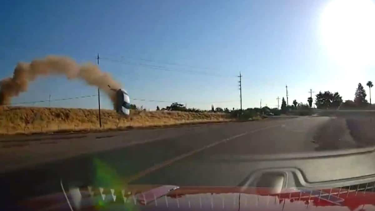 Le véhicule en question a été catapulté d’une autoroute et a effectué un vol de plusieurs mètres dans les airs, avant d’effectuer quelques tonneaux.