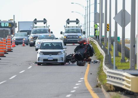 Un ralentissement soudain de la circulation a provoqué un très grave accident de la route, lors duquel un motocycliste s’est fait rouler sur le corps par une voiture, mardi matin, à Carignan, en Montérégie